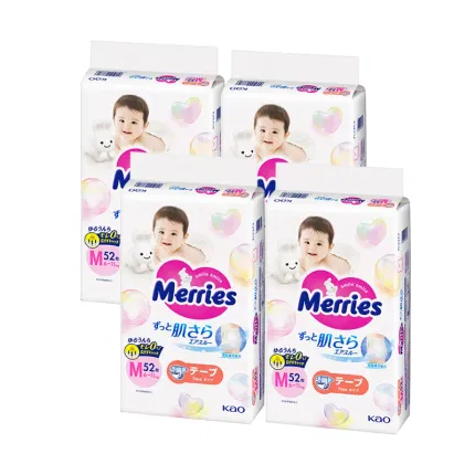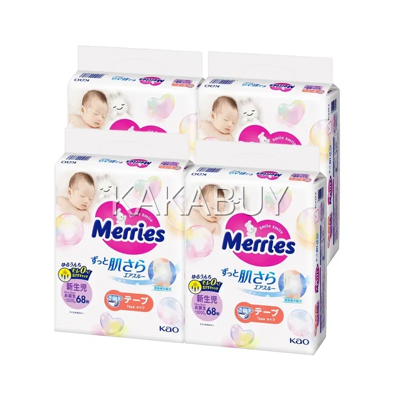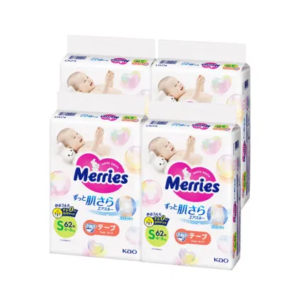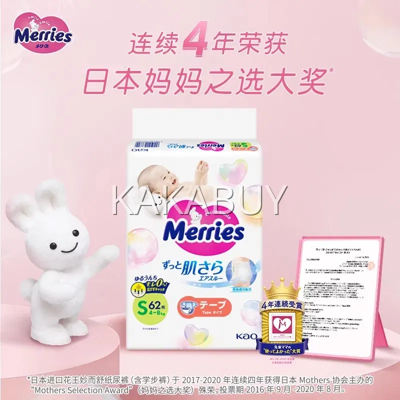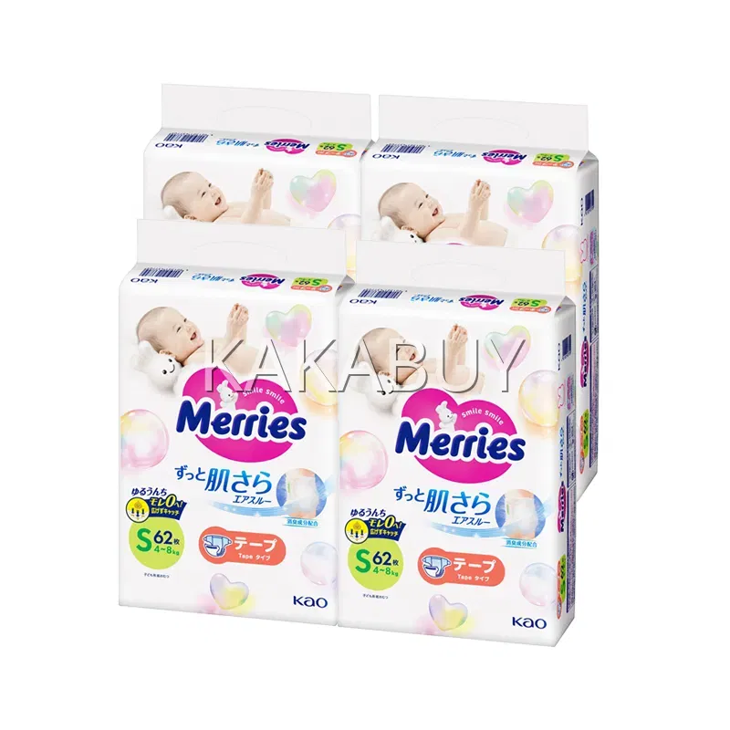 日本KAO花王 merries 素肌系列 纸尿裤 S码 4-8kg 增量版 74枚入