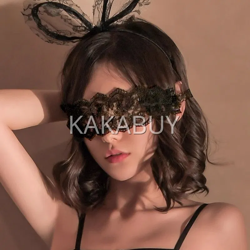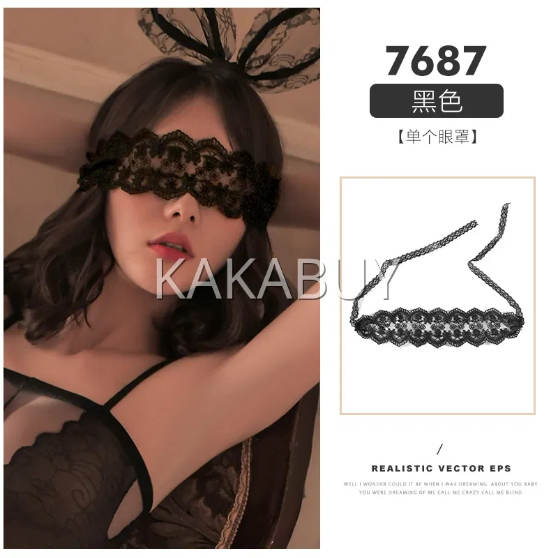 霏慕 蛛网勾心镂空提花连体网衣 7541+7627黑兔耳发箍
