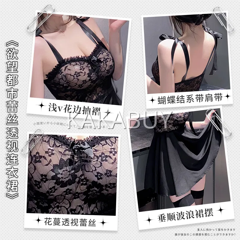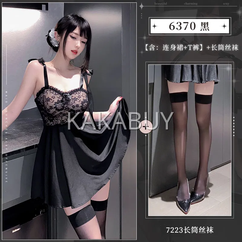霏慕 夜魅悬情惑心透视连衣裙套装 ZY01黑白+7116黑内裤+7236黑长筒丝袜