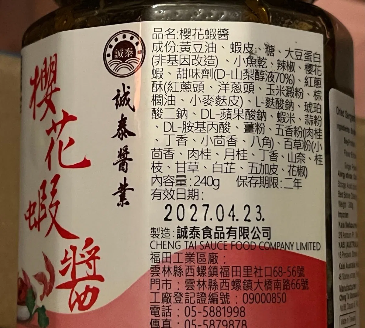 台湾诚泰 樱花虾酱 240g