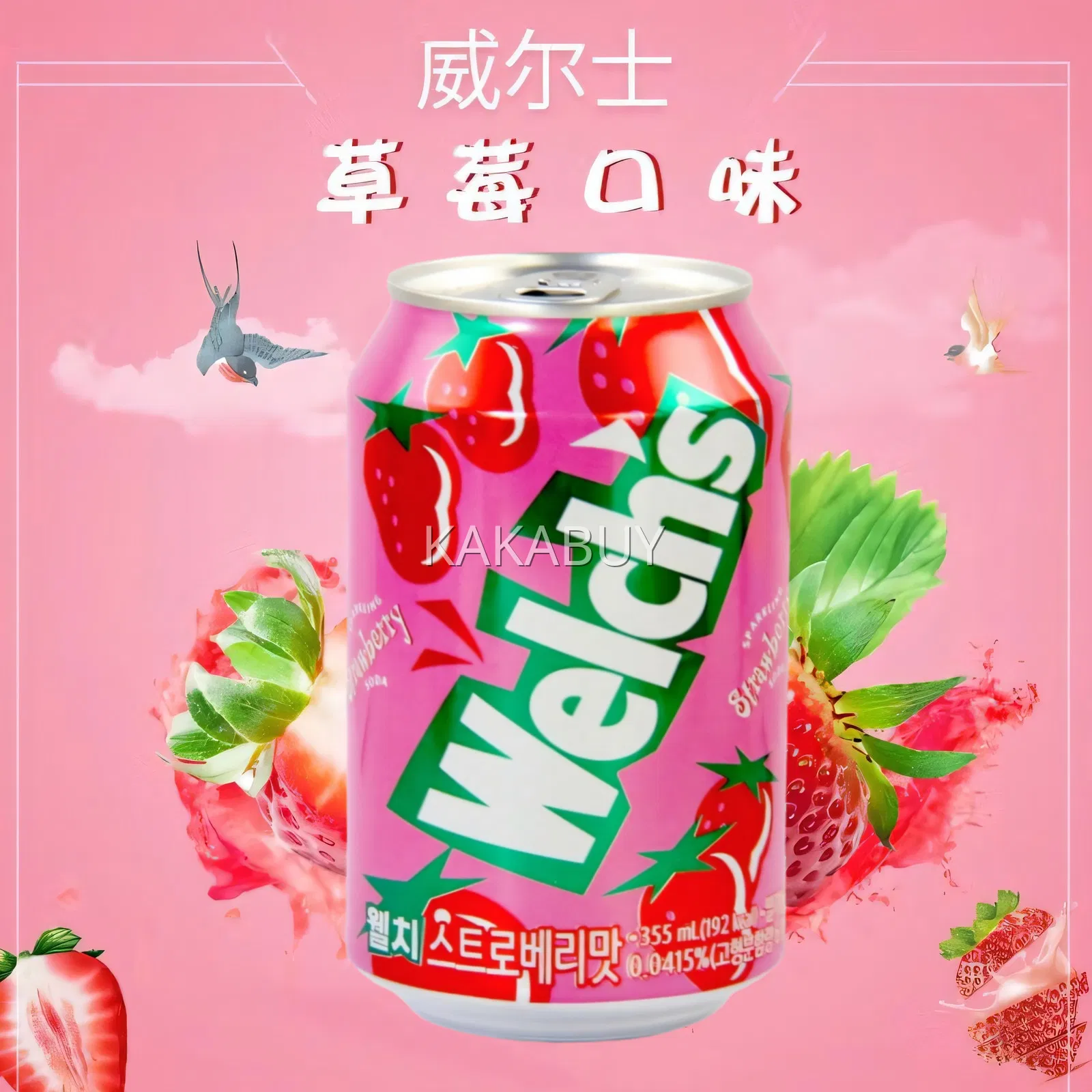 韩国WELCH'S威尔士 草莓味碳酸饮料 355ml