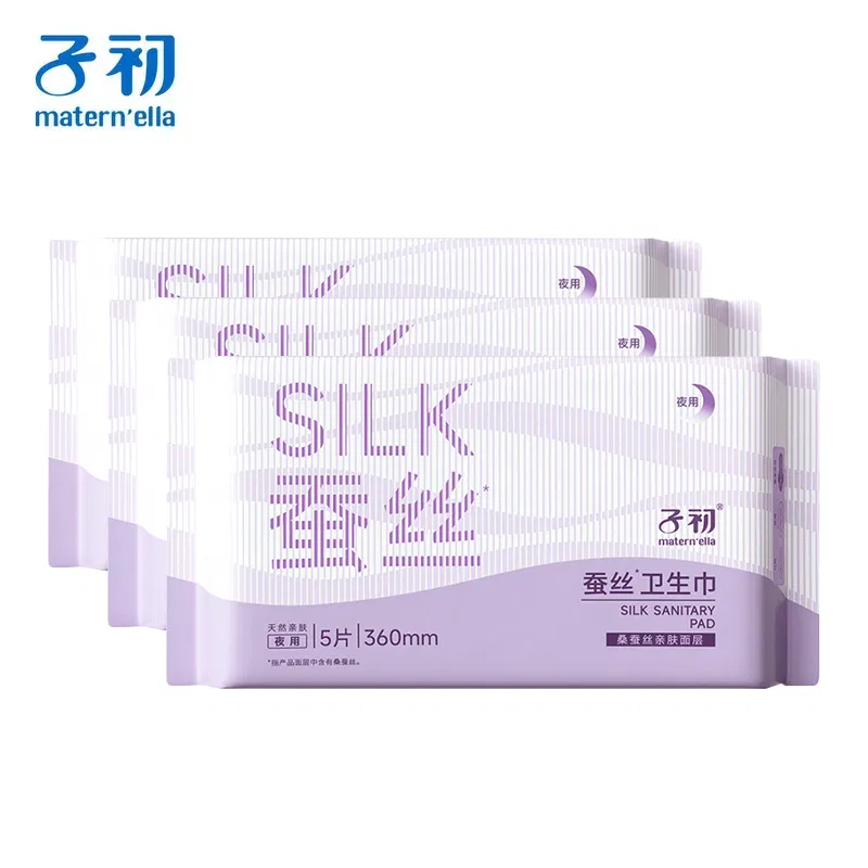 【3包】matern'ella子初 蚕丝卫生巾 量多夜用 360mm 5片*3包