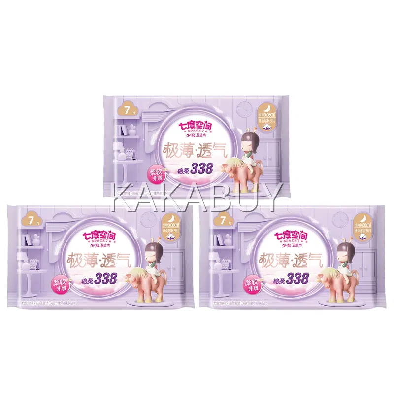 【3包·24片】七度空间 少女系列 纯绵卫生巾 超薄型超长夜用 338mm*8片*3包入