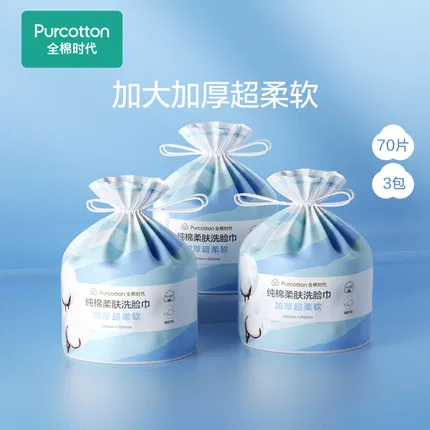 【3卷】Purcotton全棉时代 纯棉柔肤洗脸巾 200*200mm 70抽*3卷