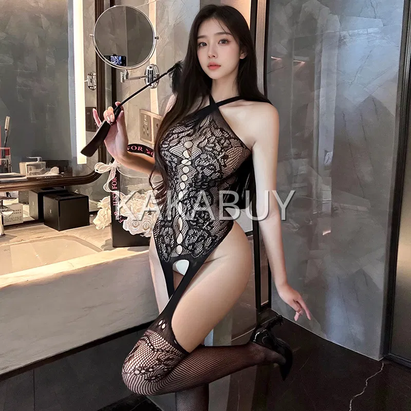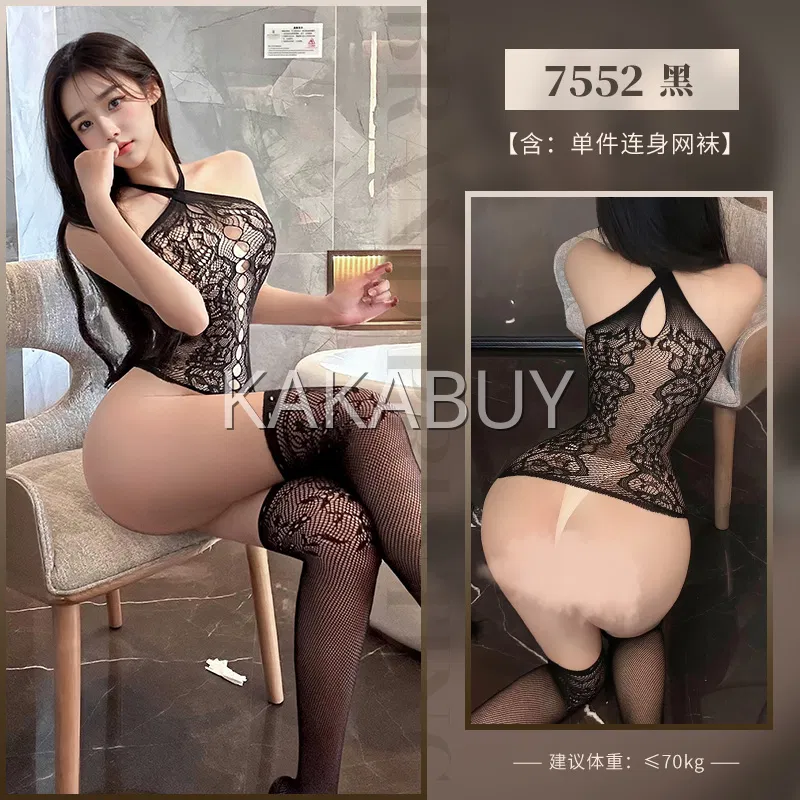 霏慕 纯欲风镂空挂脖连体衣 不含丝袜 7040