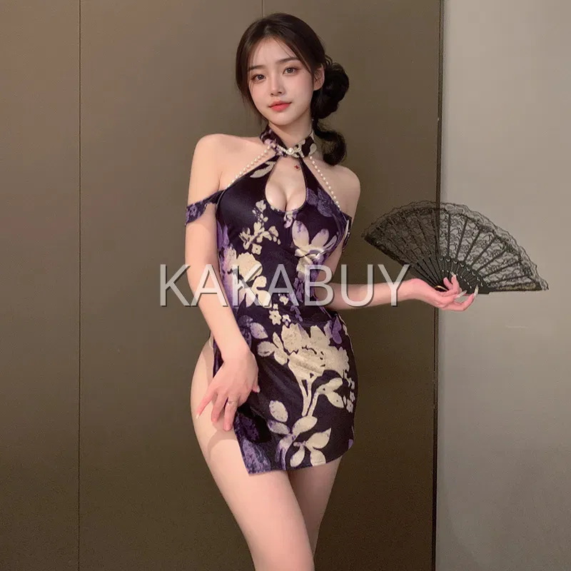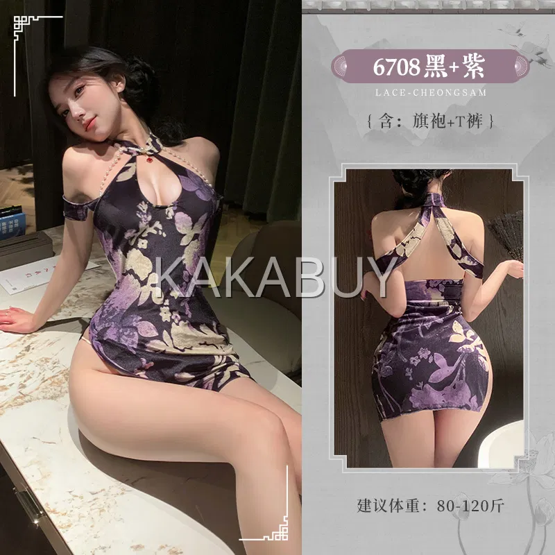 霏慕 鎏金岁月中式绑带旗袍 ZY138+7346黑紫吊带袜