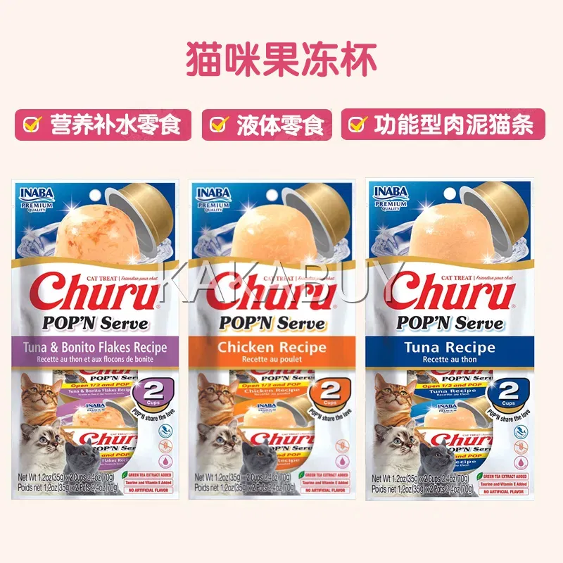 保质期2025-12-03 | INABA伊纳宝 ChuruMealTopper 啾噜佐餐肉泥条 48g*3支装 2味选