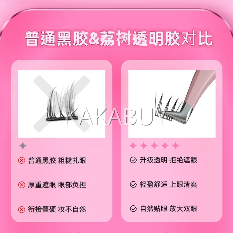 lishu荔树 纯欲猫耳朵免胶自粘单簇分段式假睫毛 上睫毛 8排