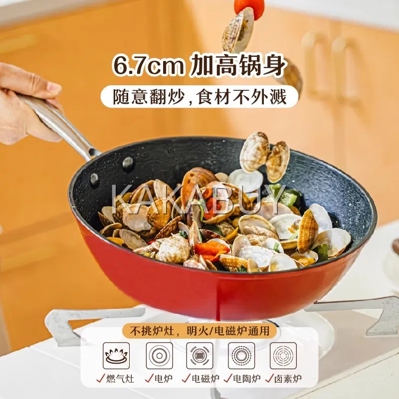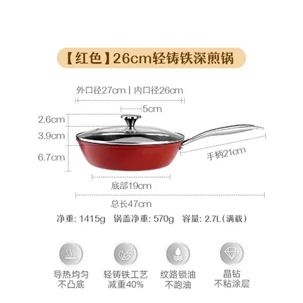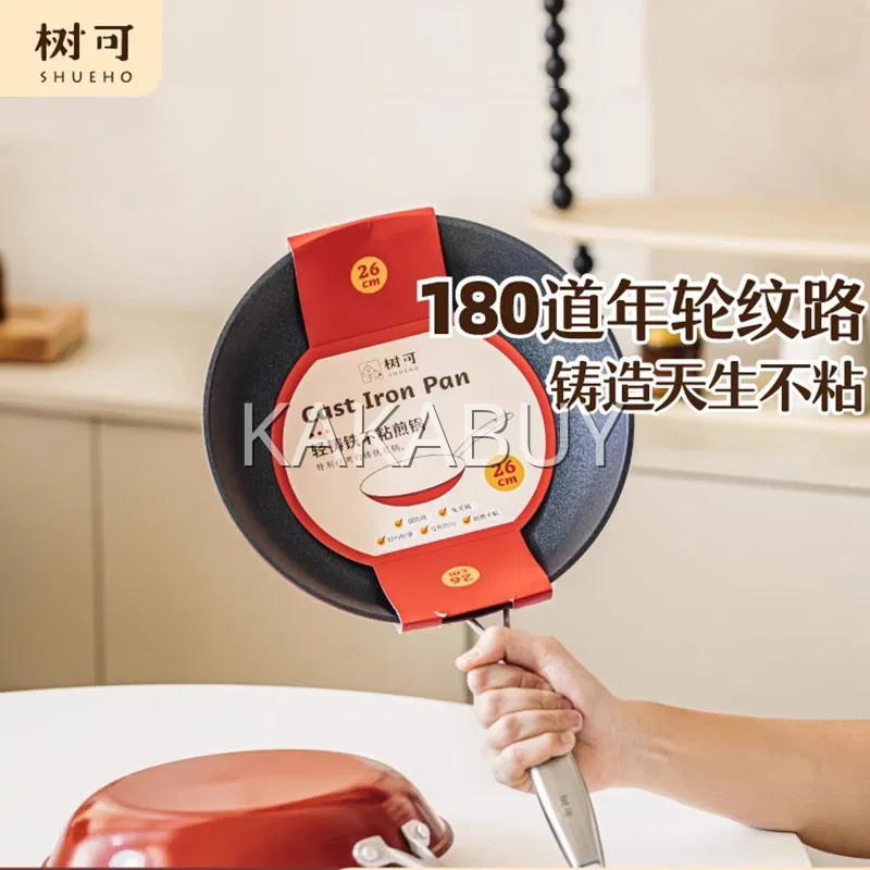 SHUEHO树可 轻铸铁不粘炒锅 带盖 红色