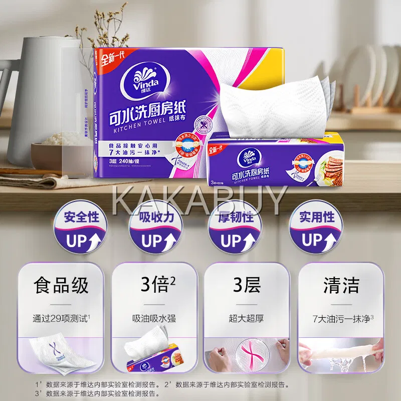 【3提·9包】Vinda维达 抽取式厨房纸 XL码 80抽*3包*3提入