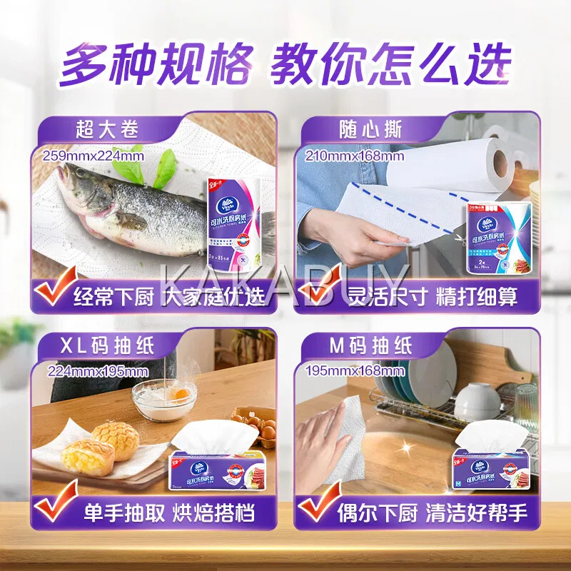 【4包】Vinda维达 抽取式可水洗厨房纸 XL码 60抽*4包入