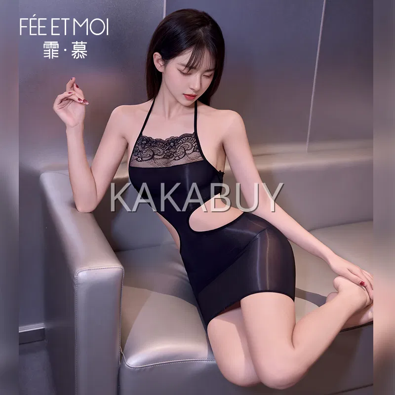 霏慕 纯欲风镂空挂脖连体衣 不含丝袜 7040