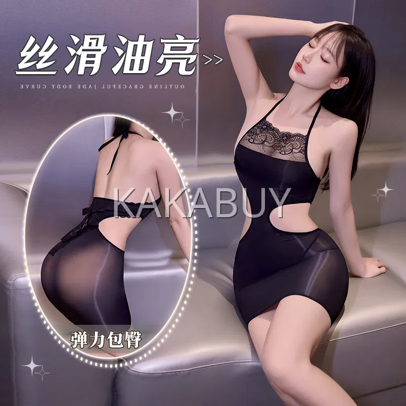 霏慕 深V薄透油亮开裆连体衣 6758 多色选