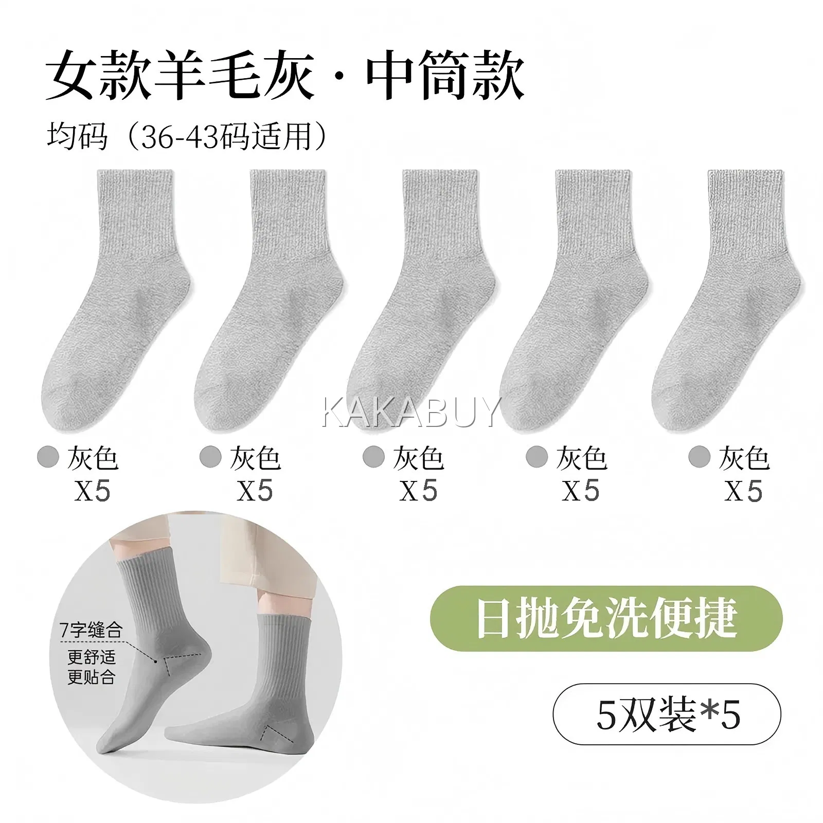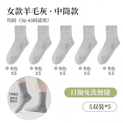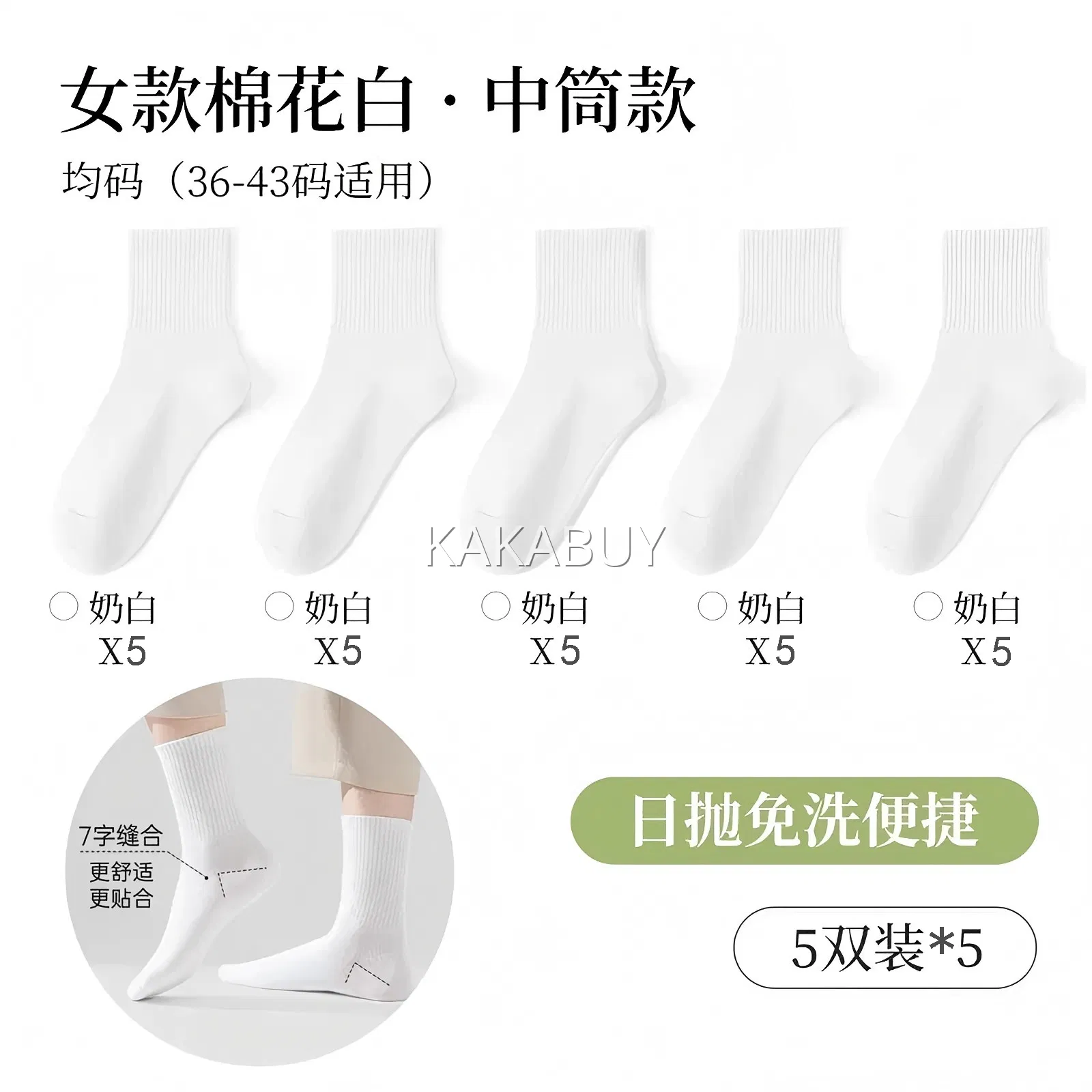 【5双】巴迪高 一次性便携中筒日抛袜 内含5双 多色选