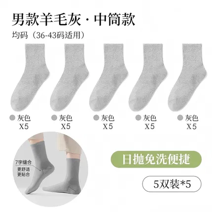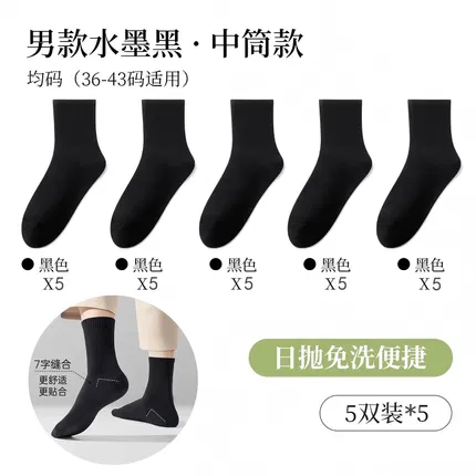 【5包】巴迪高 一次性便携男士中筒袜 5双装*5 2色选