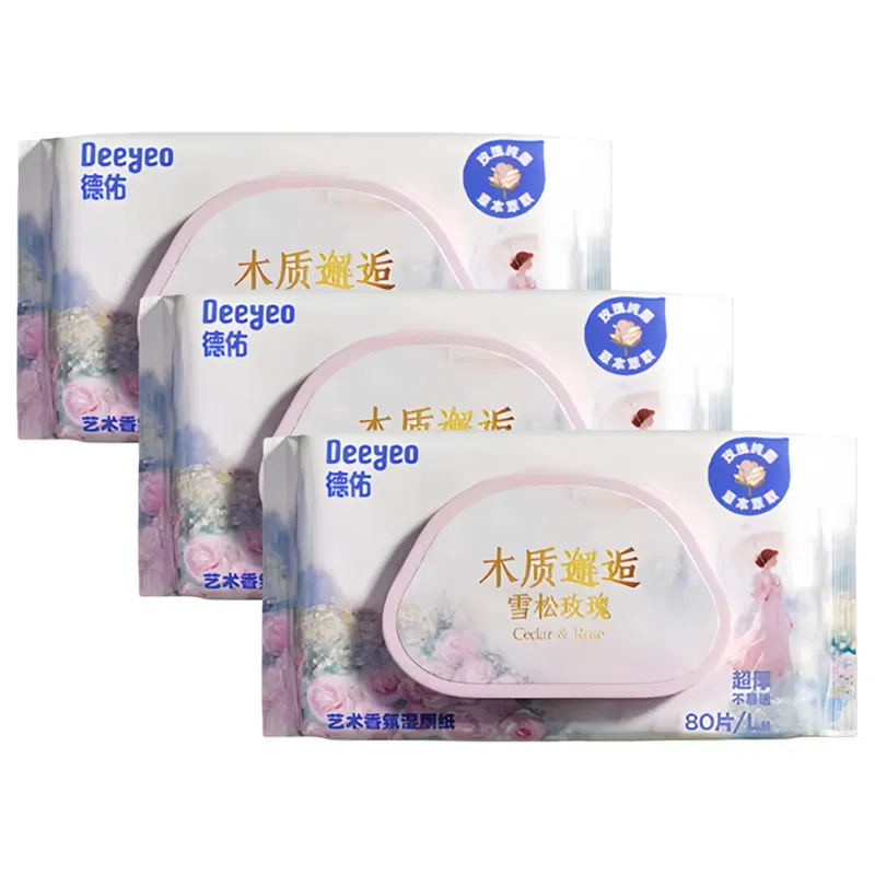 【3包】德佑 艺术香氛系列 湿厕纸 雪松玫瑰 140*200mm 80片*3包