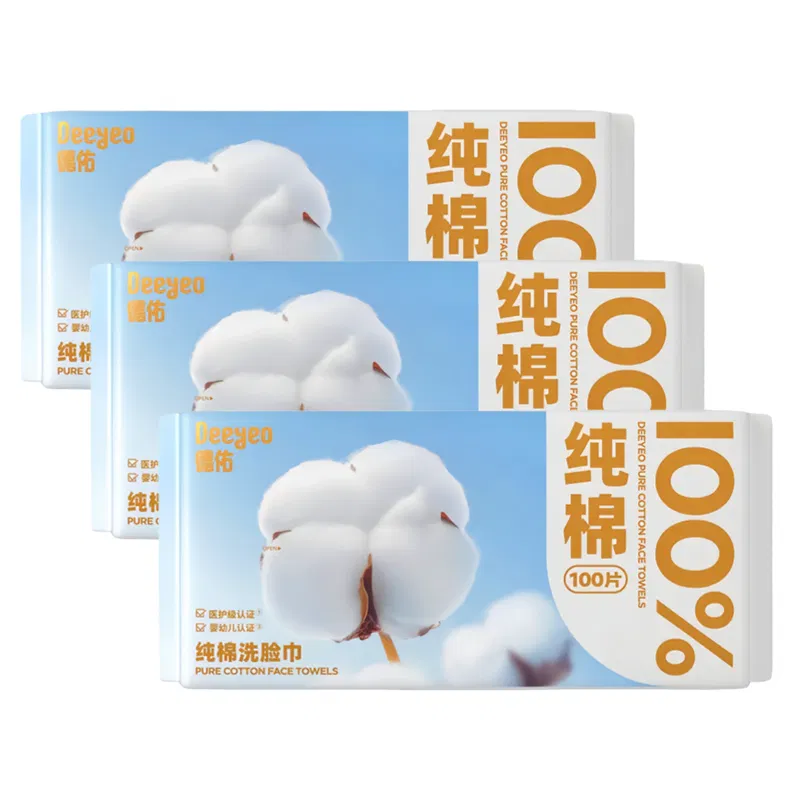 【3包】德佑 纯棉洗脸柔巾 200*200mm 100片*3包