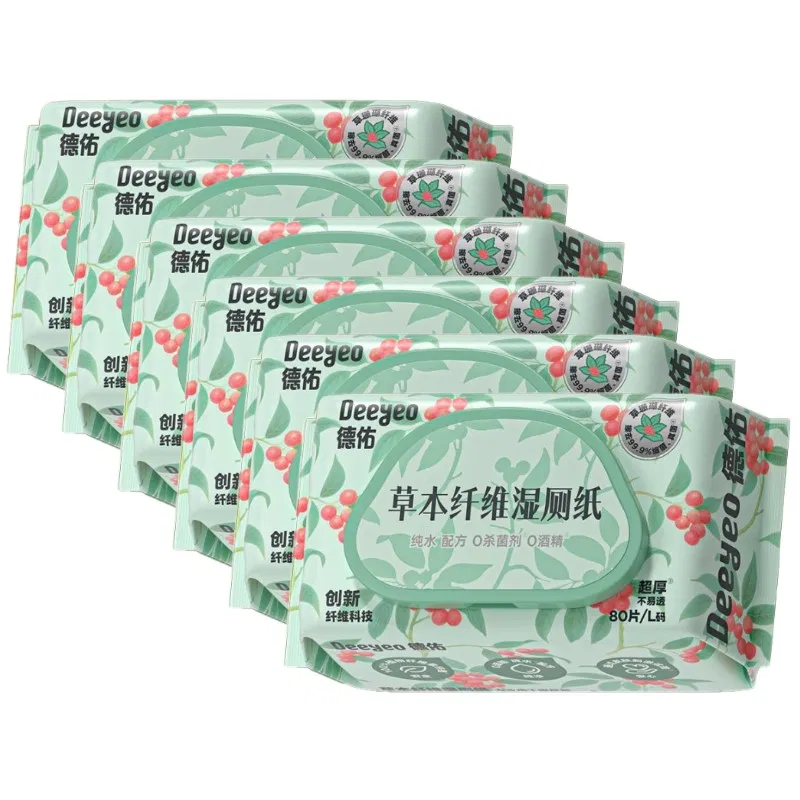 【6包】德佑 草本纤维湿厕纸 200*140mm 80片*6包