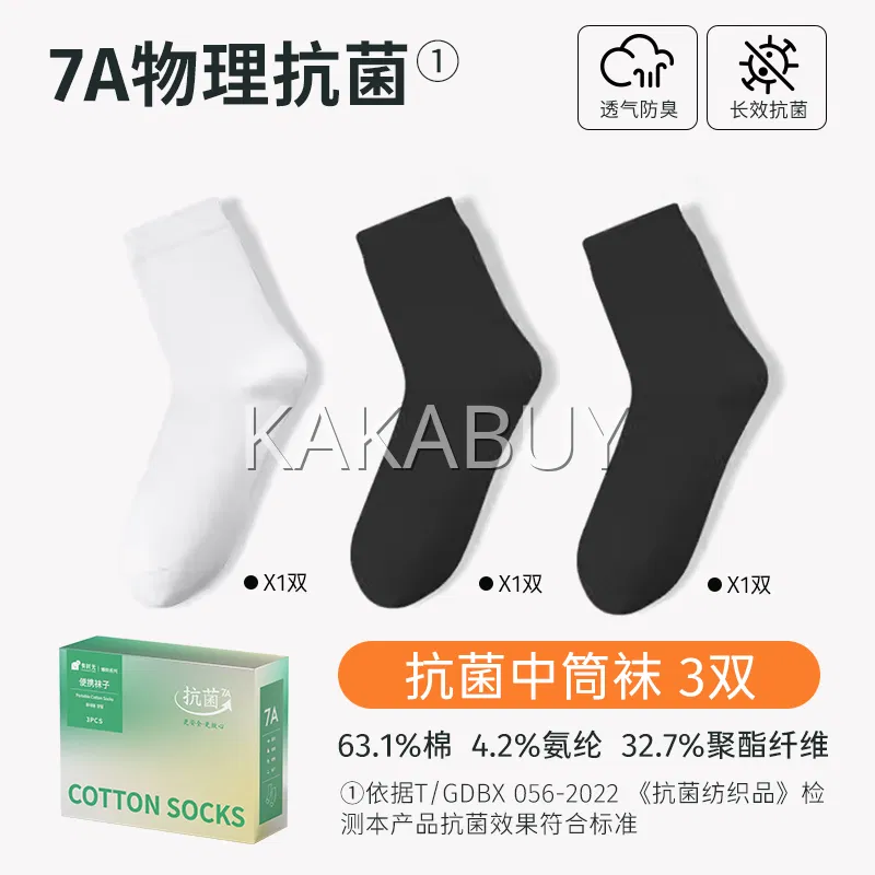 【4盒】YOUNGTIME有时光 7A抗菌日抛中筒袜 3双装*4