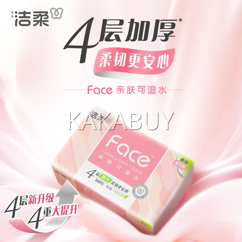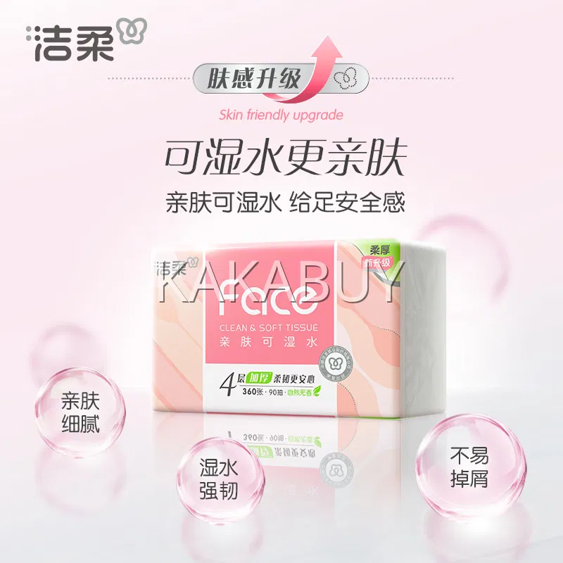 洁柔 粉Face系列 亲肤可湿水软抽纸面巾 90抽入