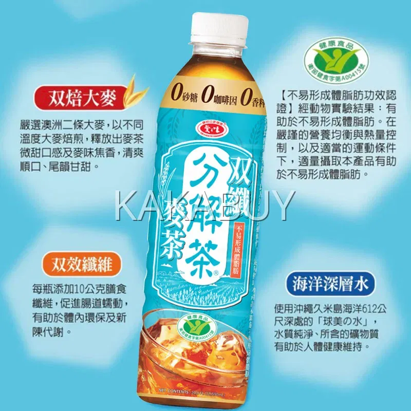 台湾爱之味 分解茶 双纤麦茶 0糖 590ml