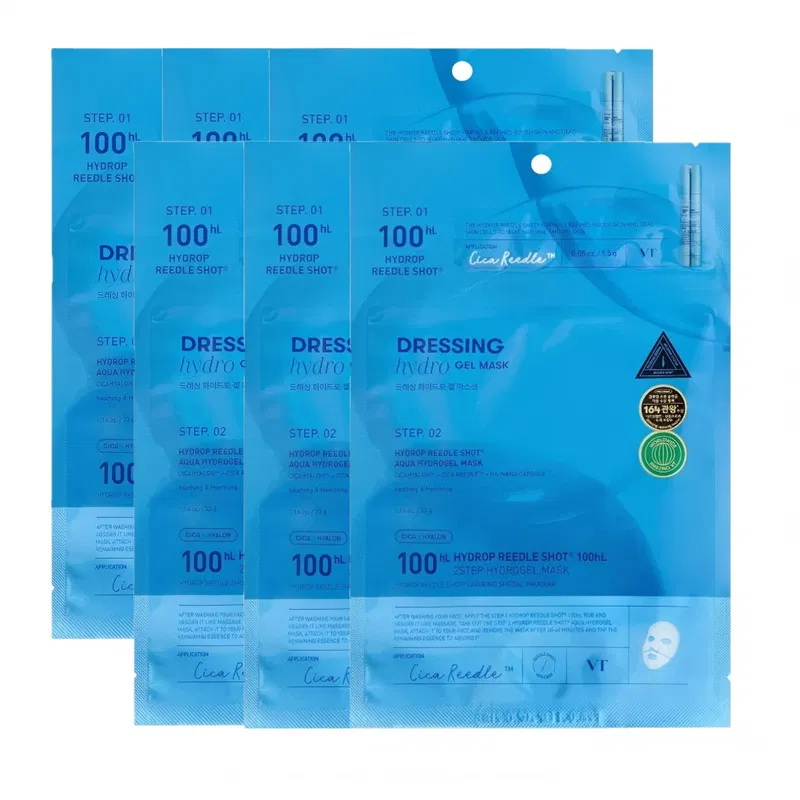 【6片】韩国VT Hydrop Reedle Shot 100 玻尿酸微晶精华两部曲水凝胶面膜 6片入