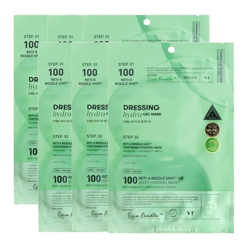 【4片】韩国VT Reti-A Reedle Shot 100 A醇抗衰微晶精华两部曲水凝胶面膜 4片入