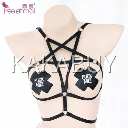 霏慕 复古挂脖抹胸开档连身袜7570 黑色