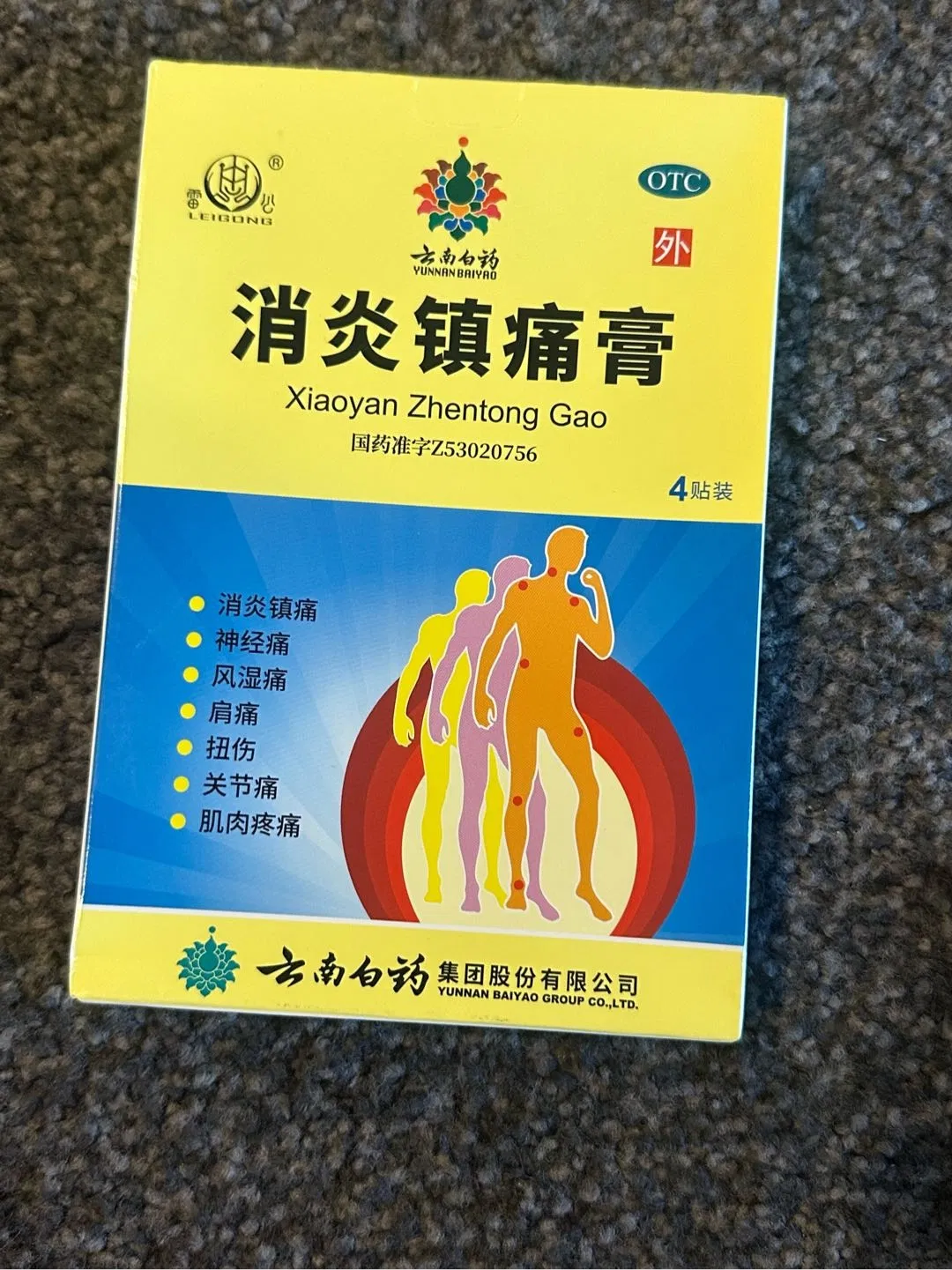 云南白药 麝香跌打风湿膏 4贴入
