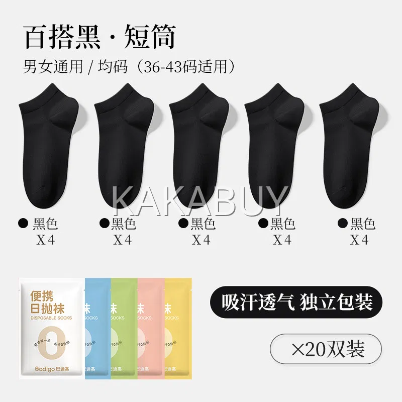 【4盒·20双】巴迪高 7A抗菌便携日抛短筒袜 5双*4盒 多色选