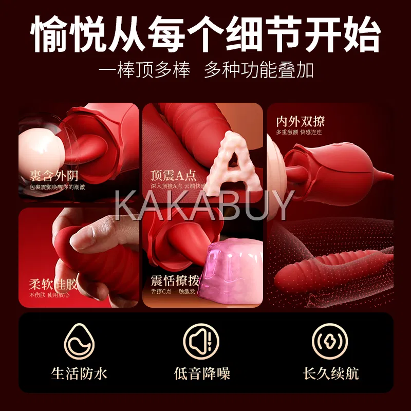 谜姬 舌舔伸缩转珠加温震动棒