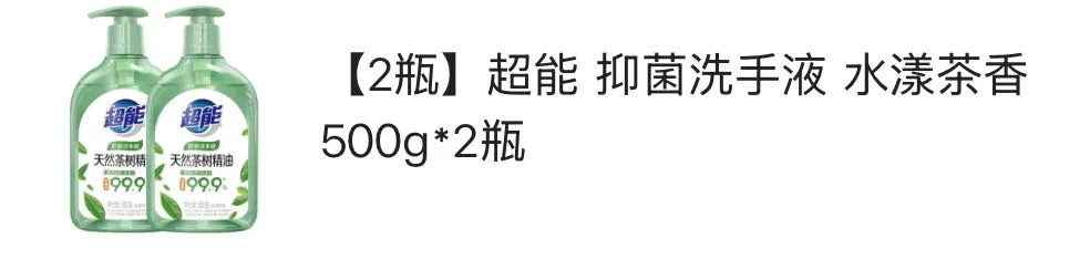 【2瓶】超能 手洗专用洗衣液 柠檬草香 1kg*2瓶入