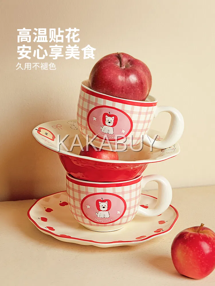 包装瑕疵丨摩登主妇 吊耳咖啡杯碟 礼盒装 225ml 红杯 不含勺
