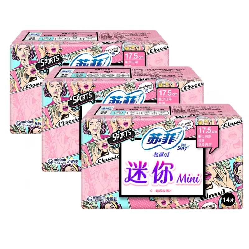 【3包】苏菲 弹力贴身系列 极薄迷你卫生巾 量少日用 175mm*14片*3包