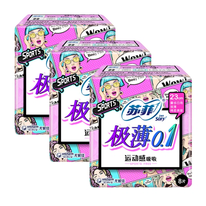 【3包】苏菲 弹力贴身系列 极薄卫生巾 量多日用 230mm*8片*3包