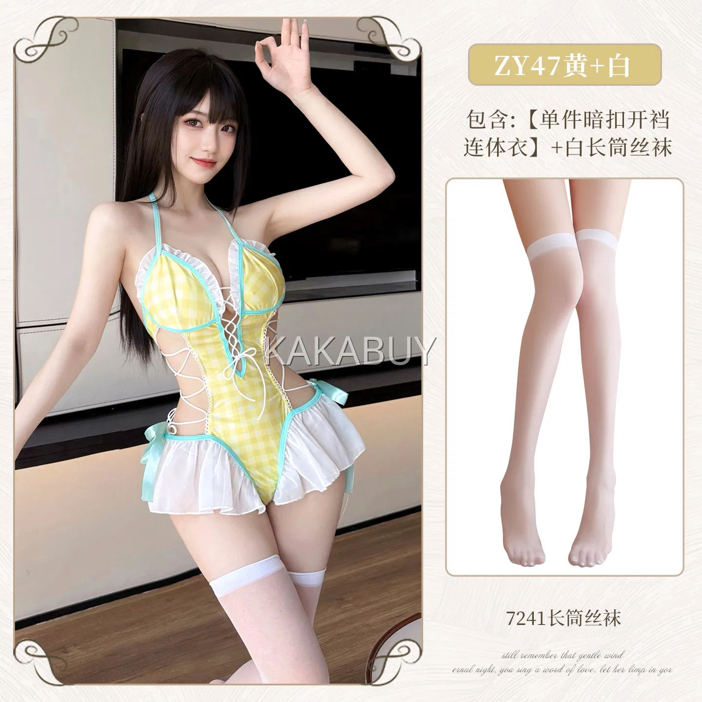 霏慕 甜欲学院露臀翘摆连体衣套装 ZY04黑白+7210白长筒丝袜+6339黑三点式