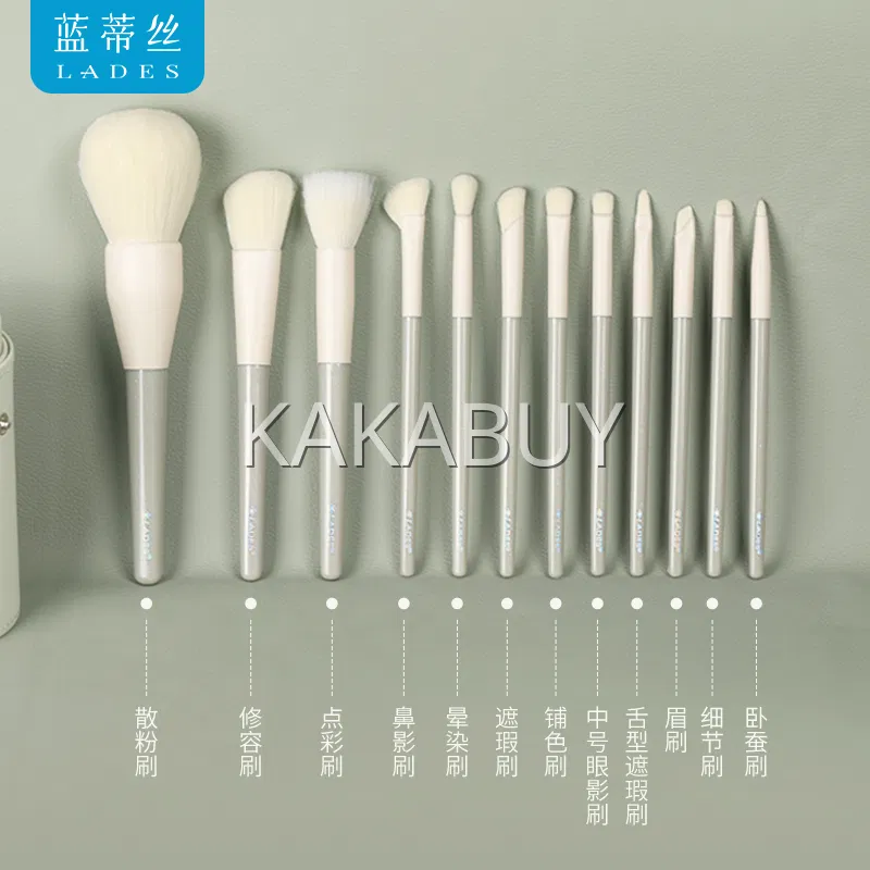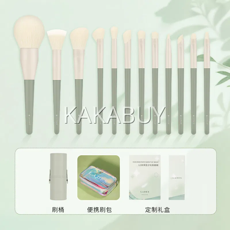 LADES蓝蒂丝 绿豆沙化妆套刷 12支 赠刷包+刷桶