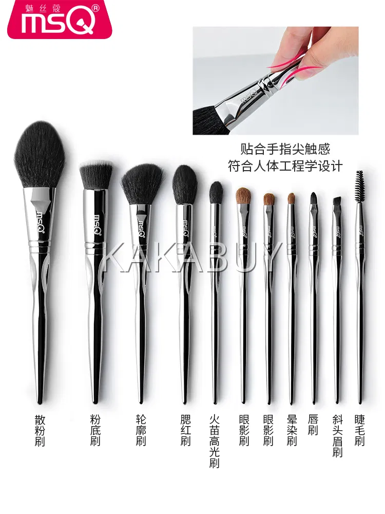 MSQ魅丝蔻 黑釉化妆刷套装 10支 动物毛款 赠刷包