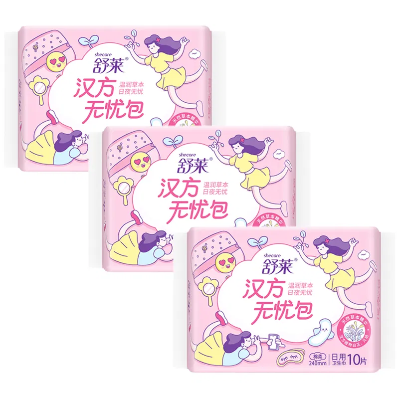 【3包·30片】舒莱 汉方无忧包 棉柔卫生巾 日用 240mm*10片*3包