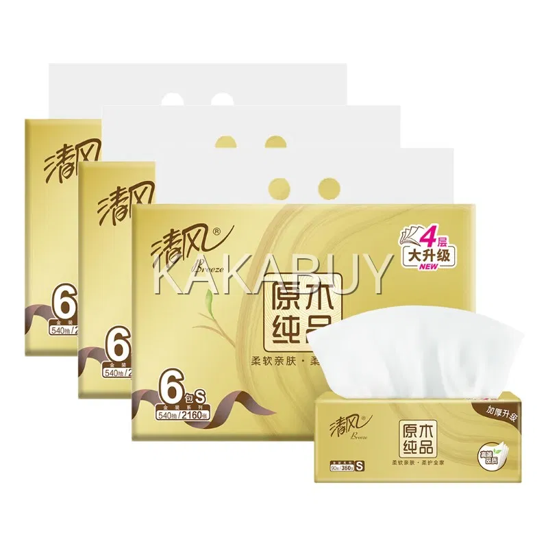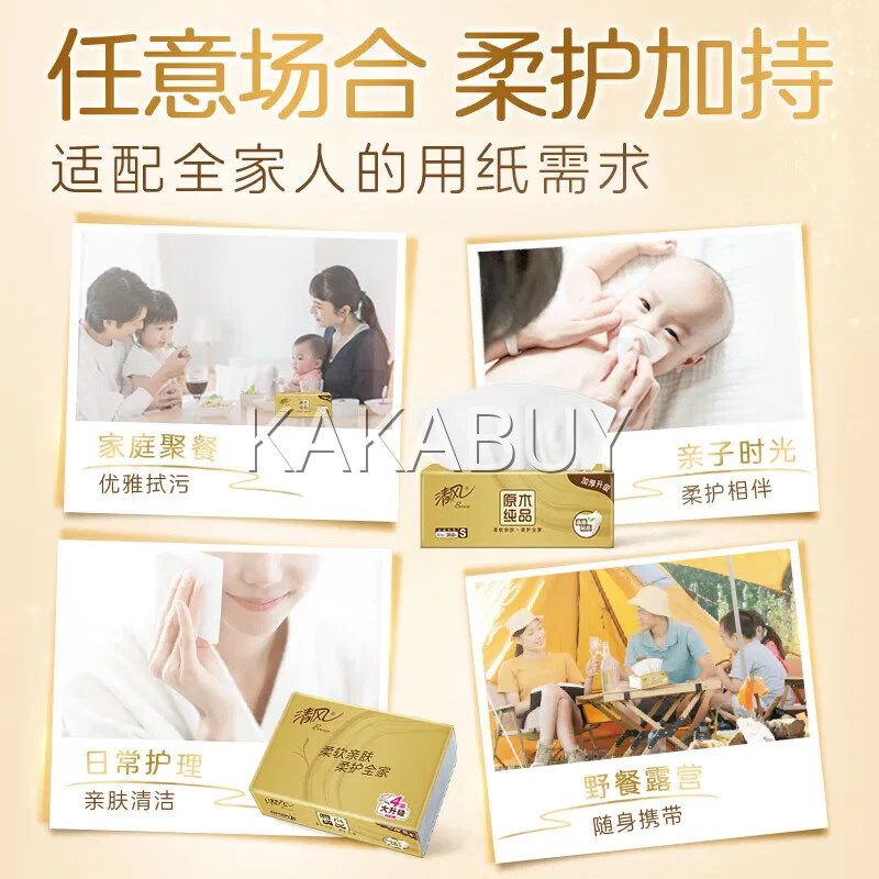 【4提·24包】清风 原木纯品金装系列 软抽面巾纸 S码 130抽*6包*4提入