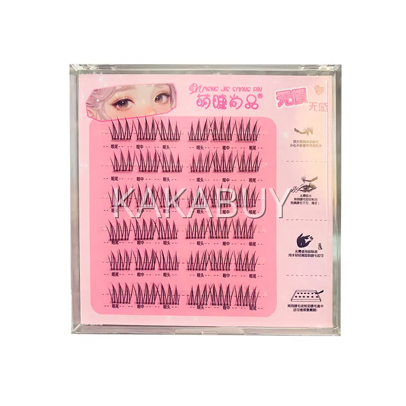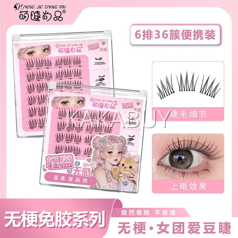 萌睫尚品 胶水款轻氧女孩单簇分段式假睫毛 上睫毛 8排