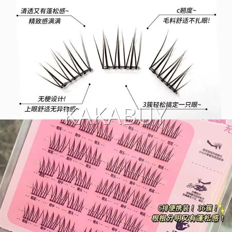 萌睫尚品 无梗免胶系列 黑泰系甜茶单簇分段式假睫毛 上睫毛 6排