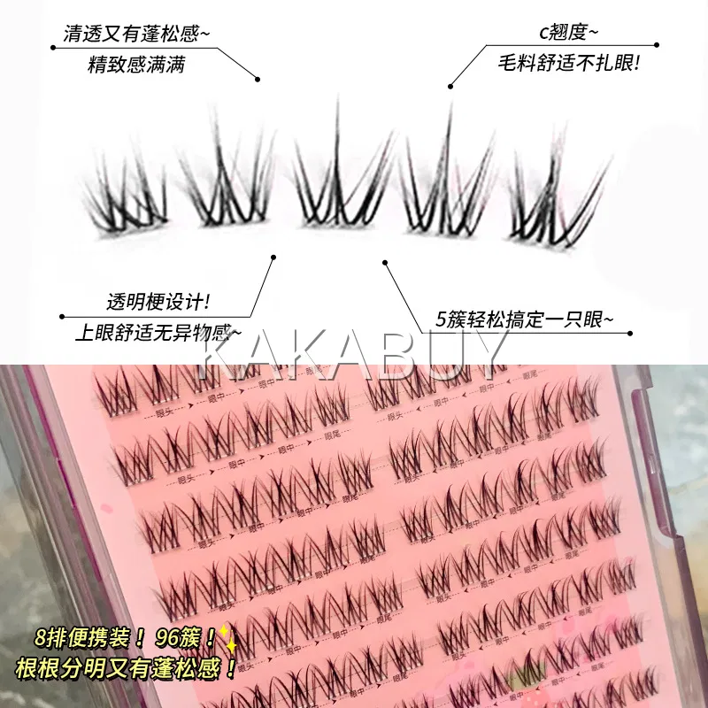 萌睫尚品 胶水款轻氧女孩单簇分段式假睫毛 上睫毛 8排