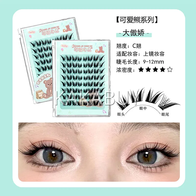 萌睫尚品 可爱熊系列 胶水款上镜女团单簇分段式假睫毛 上睫毛 8排