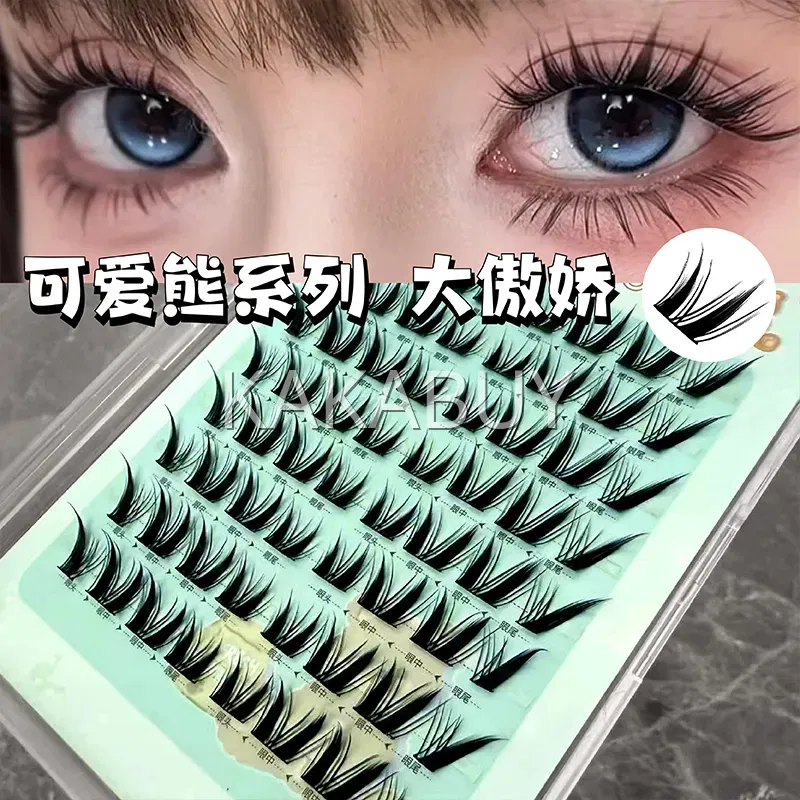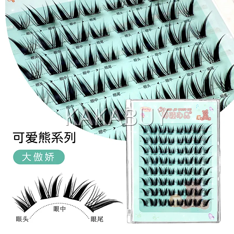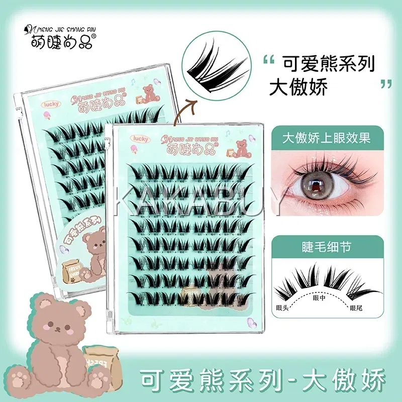 萌睫尚品 可爱熊系列 泰系甜茶黑色免胶单簇分段式假睫毛 上睫毛 8排