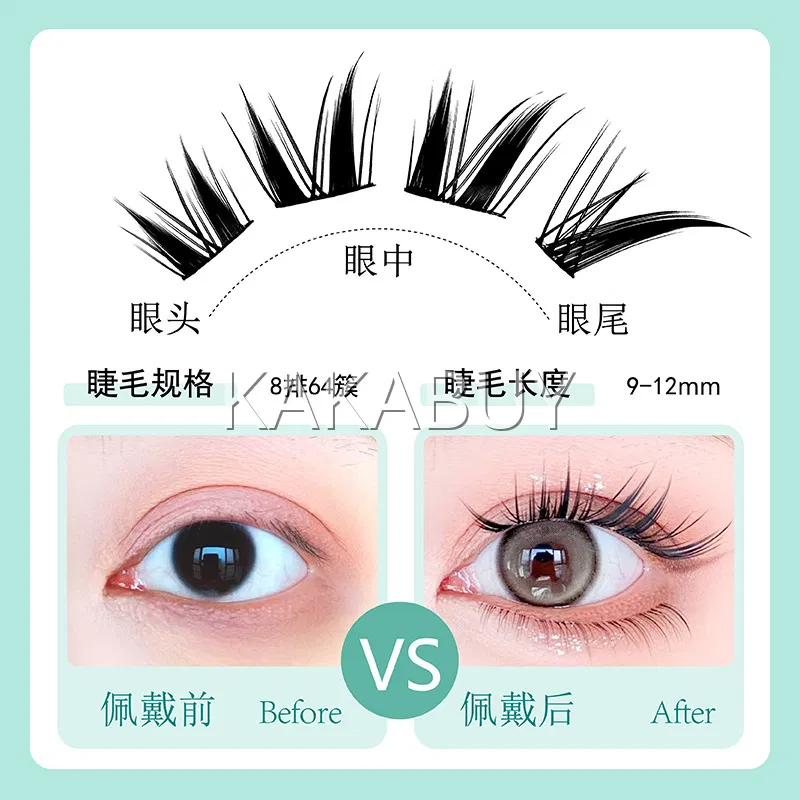萌睫尚品 胶水款轻氧女孩单簇分段式假睫毛 上睫毛 8排