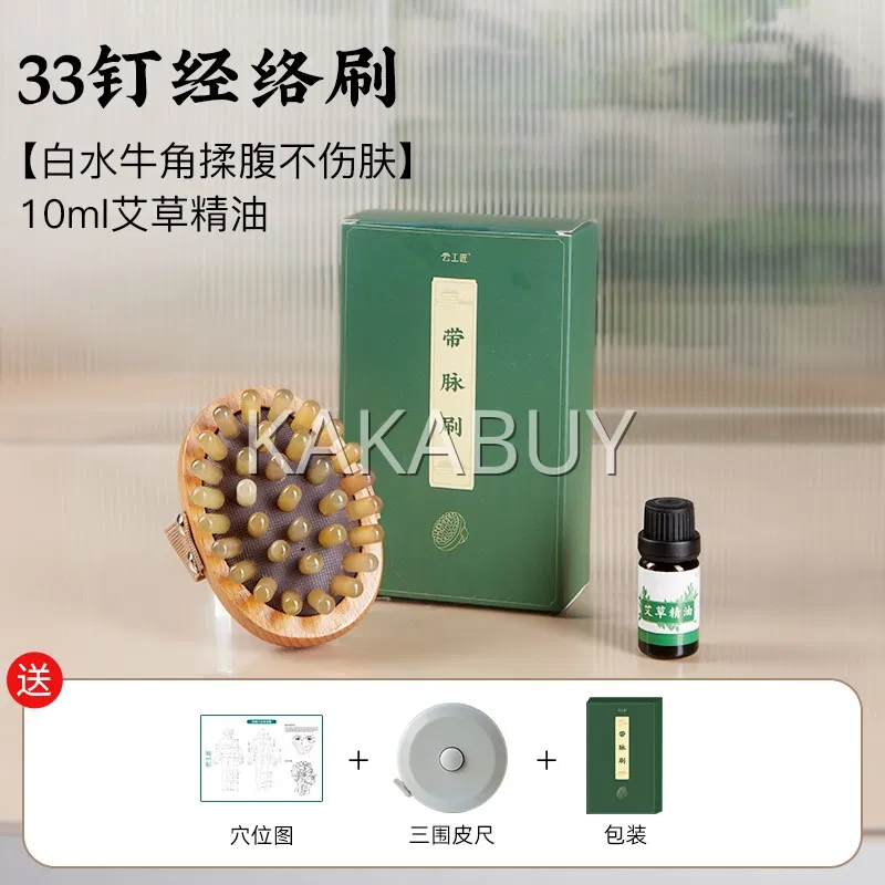 云工匠 白水牛角小蛮腰经络刷 19齿 赠精油