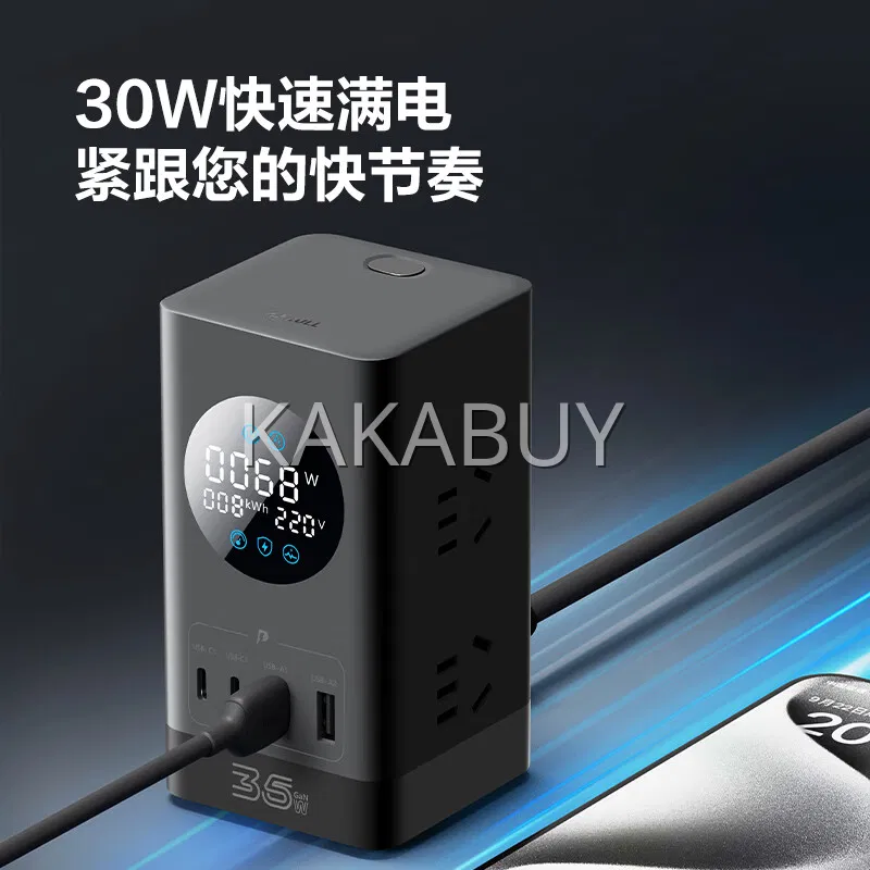 BULL公牛 30W快充魔盒插座 3插位+2USB+2Type-C 总控 全长1.5m UF1303 卵石灰