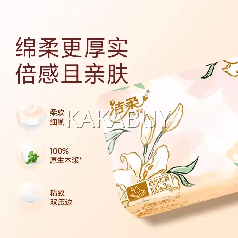 洁柔 肤感系列 软抽面巾纸 100抽入