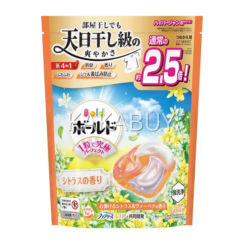 【2袋·加量袋装】日本P&G宝洁 Bold 4D凝珠洁净洗衣球 橙色柑橘香 27枚*2袋